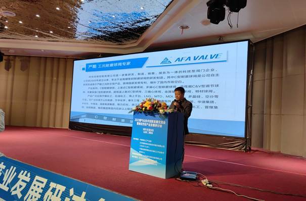 3月1日~3日,由中国煤化工产业网、中国设备管理协会石油化工行业技术服务中心、全国煤化工产业协作联盟组织的“2023煤气化技术创新发展交流会暨烯烃芳烃产业发展研讨会”在烟台顺利召开。本次大会旨在研讨国内外煤气化技术特点及成果、烯烃芳烃技术及下游产业发展情况,分享煤气化示范装置及烯烃芳烃项目运行经验、交流煤气化技术、烯烃芳烃技术创新发展思路。来自全国200多名代表参加了会议并进行了技术交流,会后参观了万华化学集团股份有限公司、冰轮环境技术股份有限公司装置现场。AFA公司应邀参加了本次会议并在会议上布展,向参会代表展示了C型耐磨球阀的优势特点和核心技术,公司董事长谢正泽在会议上作了《C型耐磨球阀在化工严酷工况的应用》主题报告,受到了与会代表的一致好评。